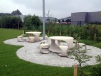 Beide picknicksets zijn afkomstig uit de Slimconcrete collectie en brengen de bewegingsvrijheid in beeld. De sets zijn gemaakt van UHPC beton. In Nederland wordt dit materiaal Ultra Hoge Sterkte Beton genoemd. Ontwerpers en architecten kunnen met dit materiaal experimenteren met fragiel ogende constructies in complexe vormen. Die toch uiterst sterk zijn. Deze flexibiliteit levert verrassende invalshoeken op voor een hele reeks nieuw meubilair. De herkomst van dit materiaal ligt in de bouwindustrie. Hier werd het al gebruikt voor o.a. gevels en steeds slankere en grotere brugoverspanningen. De wapening en het beton vormen één mengsel. Het produceren van ingewikkelde wapeningsnetten is hierdoor niet meer noodzakelijk en dat vereenvoudigt de productie van meer complexe vormen. De Grasshopper is ontwikkelt als buitenmeubilair voor een werkplek of zithoek. De Odos is ontwikkelt als buitenmeubilair voor onderwijsinstellingen maar kan ook op andere locaties in de buitenruimte gebruikt worden. Door het geringe gewicht zijn ze ook geschikt om bij daktuinen toe te passen.