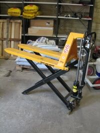 De maaikooien zijn - nog - scherp van de winteronderhoudsbeurt. Maar er komt een moment dat ook deze kooien weer gedemonteerd en verplaatst moeten worden. In de werkplaats bij de Golfbaan Dirkshorn (NH) trof de redactie deze schaarpalletwagen aan. Handig als alternatief voor tillen om de kooien op de werkbank te zetten.