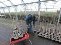 Mario: ‘Het bedrijf is in 1964 gestart door mijn vader. In 2005 begonnen we met de overname. Sinds die tijd zijn we aardig gegroeid; de omzet is nu zo’n vijf keer groter dan tien jaar geleden. In totaal werken we met vier à vijf man. Naast onze drie vaste medewerkers krijgen we af en toe hulp van zaterdaghulpen of uitzendkrachten. Het bedrijf is met zo’n twee hectare relatief klein van omvang. Dat komt doordat de planten die de kwekerij verlaten relatief klein zijn; we doen vooral aan containerteelt.’
