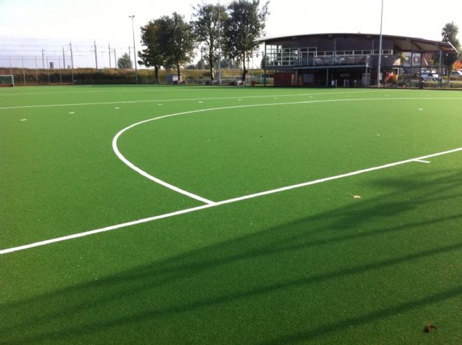Renovatie kunstgras hockeyveld bij HV Abcoude |