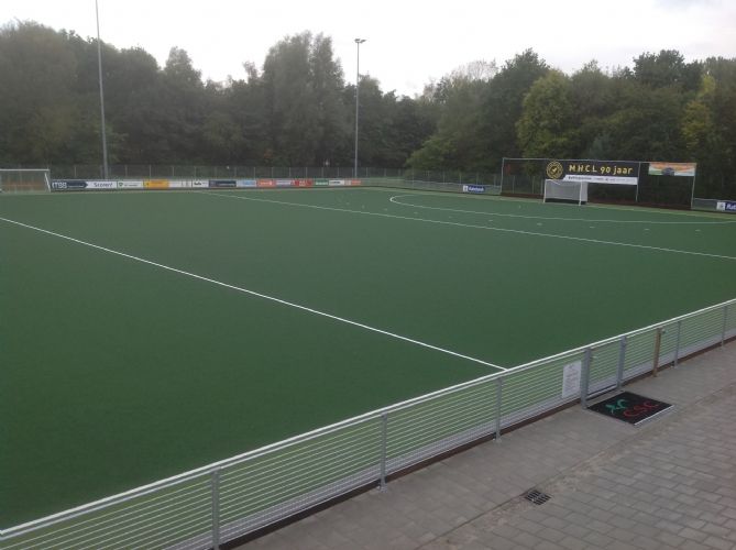Hockeycomplex MHCL in Leeuwarden bestond tot voor kort uit twee zand-ingestrooide hockeyvelden. Door een toenemende groei van de club was er behoefte aan een derde veld. Tevens dienden de bestaande velden te worden gerenoveerd. In de zomer van 2014 zijn de bestaande velden omgebouwd tot gloednieuwe semi-watervelden. Het nieuwe derde veld is gerealiseerd op het naastgelegen voetbalveld. Alle drie velden zijn voorzien van sportveldverlichting waarbij de armaturen van de velden 1 en 2 zijn vervangen voor nieuwe armaturen. De semi-watervelden worden beregend met pop-up sproeiers welke in de omliggende betonplaten wegzakken wanneer er niet gesproeid wordt. Centraal op het middenterrein zijn de opslag reservoirs en de pompinstallatie geplaatst, de reservoirs zijn afgedekt met grond zodat deze heuvel als uitkijkpunt over de drie velden fungeert.De sporttechnische lagen van de velden 1 en 2 zijn hergebruikt in de nieuwe constructies. De sporttechnische laag van veld 2 bestond uit een lava-rubber mengsel welke na bijmengen met rubber is hergebruikt in de sporttechnische laag van het zand-ingestrooide veld (veld 3). De sporttechnische laag van veld 1 is na bijmenging van lava hergebruikt in de sporttechnische laag van veld 1 en veld 2. Aanneemsom: 859.350,00 Naam opdrachtgever: Gemeente Leeuwarden Contactpersoon opdrachtgever: Henk Renting Contactgegevens opdrachtgever: www.leeuwarden.nl Naam architect: KYBYS Contactpersoon architect: Arjen Wallinga Contactgegevens architect: www.KYBYS.nl Naam aannemer: C.S.C. Contactpersoon aannemer: Andre Ceelen Contactgegevens aannemer: www.cscsport.nl