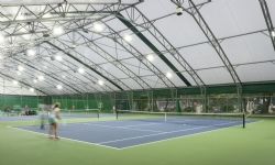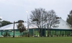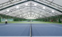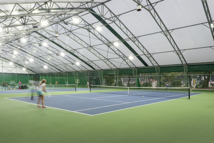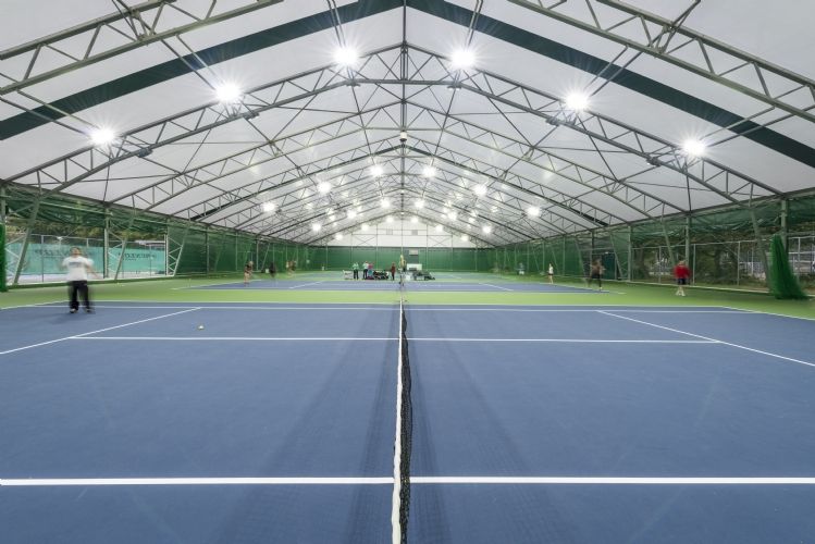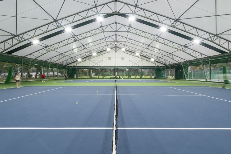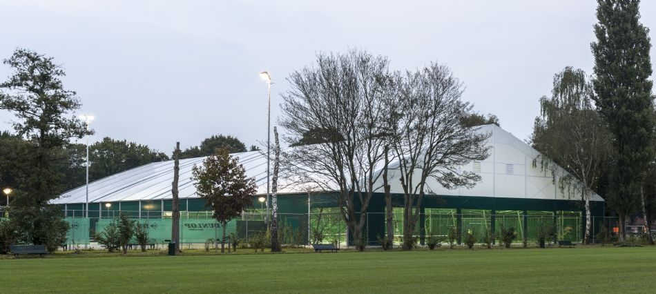 Veldeman bouwde er afgelopen zomer een tennishal van 40m breed en 70m lang die vier hardcourtbanen overdekt. Dankzij dit concept met zijwanden, die geopend kunnen worden, zijn spelers in de winter beschermd tegen koude, wind en regen en genieten ze 's zomers van een buitensportgevoel. Het lichtdoorlatend zeildoek zorgt voor een natuurlijke lichtinval.