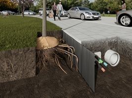 Op de beurs worden ook verschillende wortelschermen getoond, waaronder de RootBlock wortelwering. Dit wortelscherm uit HDPE kunststof (High Density Polyethylene) is met zijn 1 of 2 mm dikte een weringswand van het zwaardere type. Het RootBlock wortelscherm wordt al jaren gebruikt om verharding en ondergrondse infrastructuur te beschermen. Bekijk op de beurs ook het unieke wortelgeleidingspaneel. Dit paneel wordt ook al vele jaren toegepast om boomwortels dieper in de bodem te geleiden om wortelopdruk te voorkomen.