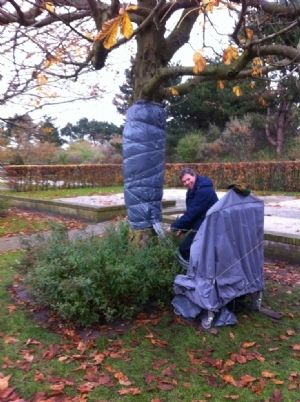 Onderzoekers van Wageningen UR ontdekten dat de bacterie, die de gevreesde kastanjebloedingsziekte in paardenkastanjebomen veroorzaakt, gevoelig is voor hogere temperaturen en ontwikkelden een warmtebehandelingsmethode. De warmtebehandeling is op dit moment de enige beschikbare methode die kastanjebloedingsziekte kan stoppen. Ziektebeheersing Sinds de grote uitbraak van kastanjebloedingsziekte in 2005 zijn diverse methoden en middelen uitgeprobeerd om de ziekte te beheersen. Tot voor kort zonder bevredigend resultaat. In 2011 ontdekten onderzoekers van Wageningen UR dat de bacterie die kastanjebloedingsziekte veroorzaakt - Pseudomonas syringae pv aesculi - in laboratorium- en kasproeven gevoelig was voor hogere temperaturen. Wanneer jonge kastanjebomen gedurende een paar dagen in een verwarmde kas van rond de 39 graden Celsius werden gehouden, bleek de bacterie, maar niet de boom, het loodje te leggen. De resultaten waren dusdanig bemoedigend, dat de stap werd gezet naar grote bomen in de buitenlucht. Praktijkproeven Sinds 2013 zijn praktijkproeven uitgevoerd bij diverse gemeenten verdeeld over Nederland. Rond de stam van volwassen paardenkastanjes wordt een 'warmtedeken' aangebracht die tijdens een aantal dagen de temperatuur op een hoge waarde kan vasthouden. Uit de praktijkproeven bleek dat ook volwassen bomen gecontroleerd kunnen worden opgewarmd. Licentie Wageningen UR is dit jaar een licentiecontract aangegaan met Prop Boomtechniek, een afdeling binnen de het bedrijf A. Prop Beplantingswerken. Dit innovatieve boomtechnisch bedrijf heeft de techniek verder ontwikkeld tot een voor de markt geschikte methode. Samen met twee andere toekomstige licentiehouders zal de methode worden toegepast tegen kastanjebloedingsziekte. Deze partijen zullen de methode ter beschikking stellen aan onderaannemers/sublicentienemers in Nederland. Monitoren van behandelde bomen De komende jaren zullen alle behandelde bomen in een monitoringsprogramma gevolgd worden in hun ontwikkeling. Wageningen UR blijft betrokken bij het beheer van dit monitoringsprogramma en zal regelmatig de resultaten analyseren. Het doel is de stam van de boom met de warmtebehandeling zo goed mogelijk vrij te maken van de ziekteverwekkende bacterie. Hierdoor krijgt de boom de gelegenheid om de aantasting te overgroeien en dus te herstellen. De warmtebehandeling geeft de boom dus een stevige duw in de goede richting. Op dit moment is nog niet bekend hoe lang de behandeling stand houdt. De bacterie is immers nog aanwezig in de omgeving, bijvoorbeeld in of op de niet-behandelde delen van de boom. Het monitoringsprogramma zal daar antwoord op gaan geven. Landelijk loket kastanjebloedingsziekte Prop Boomtechniek heeft een landelijk loket Kastanjebloedingsziekte opgezet met een voor heel Nederland geldend telefoonnummer: 0900-40 40 600. Via dit nummer is nadere informatie te verkrijgen, kunnen geconstateerde zieke bomen gemeld worden of een afspraak gemaakt voor diagnose en behandeling. Via dit loket is het ook mogelijk in contact te komen met partijen die advies kunnen uitbrengen en die de zieke bomen op een professionele manier kunnen behandelen.