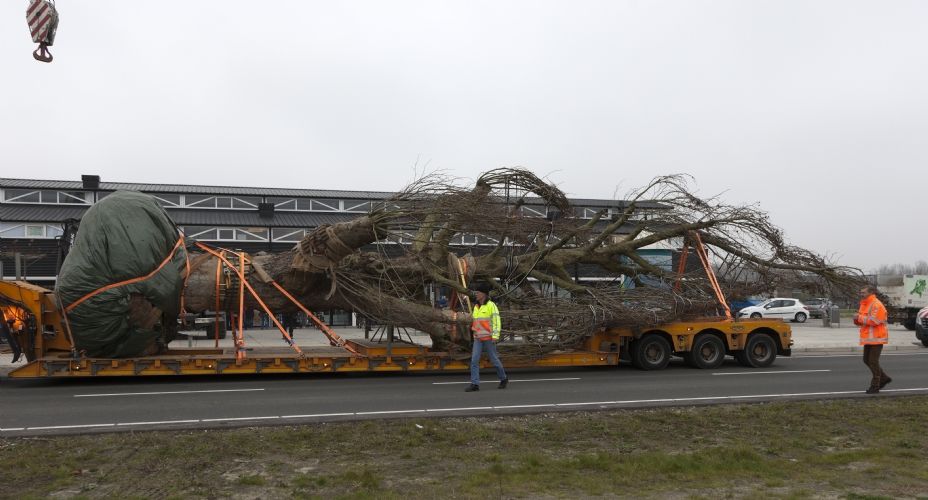 Deze boom heeft tien jaar op de kwekerij gestaan, maar is oud geworden in Valkenswaard. Het gewicht van de boom bedraagt 25 ton.