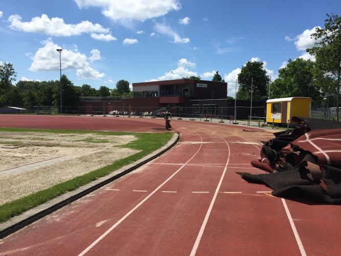 Bij Atletiekvereniging Clytoneus in Woerden zijn in 2015 de toplaag en de goten van de atletiekbaan vervangen.