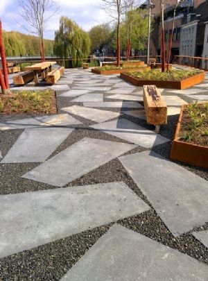 Bovenop het dak van het informatiecentrum, anderhalve meter boven het straatniveau, heeft Van Helvoirt Groenprojecten een openbaar dakpark gemaakt van 600 vierkante meter. Ruud Kempen, van Van Helvoirt Groenprojecten: 'Onder andere door de beperkte draagkracht van het dak was dit een lastige klus. Mede door de vele zitruimtes is het er goed toeven in de middagzon, met een fantastisch uitzicht over de Dommel.'