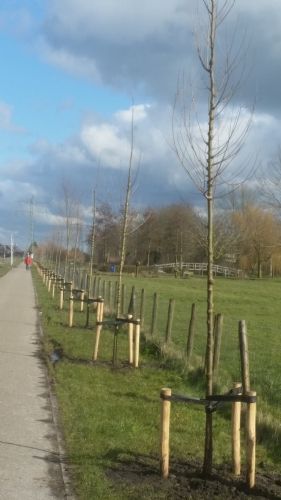 Conform de doelstelling van de Iepenwacht werd de mogelijkheid geboden om nieuwe iepen aan te planten. Andere belangrijke overwegingen voor de verandering van boomsoort langs het fietspad waren: de iep als soort te behouden voor Fryslân, de iep past in het landelijke gebied, de nieuwe soorten zijn in hoge mate iepziekte resistent, de voorgestelde soorten Ulmus 'New Horizon' (60 %) en Ulmus 'Rebona'(40 %) hebben op latere leeftijd de kenmerkende iepenboog, de iep is beter bestand tegen de zware klei, de natte omstandigheden en de windbelasting op deze locatie. De keuze voor 2 soorten is ingegeven om het risico van mogelijke iepziekte aantasting zo klein mogelijk te maken. De nieuwe aanleg met iepen was bovendien praktisch gelet op het feit, dat we direct ter plekke 84 bomen konden planten in één werkgang. Zij zullen op den duur een mooie laan vormen, waaronder het goed fietsen is.