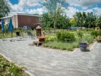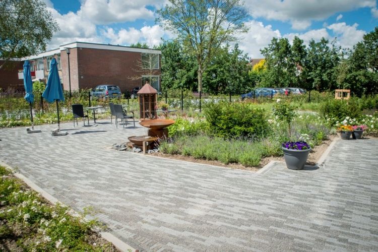 In deze tuin zijn veel vaste planten en verschillende soorten bestrating verwerkt. Voor de psycho-geriatrische bewoners is een beleeftuin ingericht. Hierin staan diverse belevingselementen zoals een vogelkooi, rainmaker en karakteristieke beplanting als rozen en lavendel. Daarnaast is in de beleeftuin een waterornament geschonken door de architect Marco van Wetten en Verheij Integrale groenzorg. Tijdens het realiseren van dit project was er sprake van wateroverlast. Om dit te verhelpen is gebruikt gemaakt van de Tree Fertilizer Injector -methode (TFI). Met deze methode worden er scheuren en poriën gemaakt in verschillende aardlagen, zodat het regenwater makkelijk weg kan. Aanneemsom: 231.000,- euro Naam opdrachtgever: Cedrah Contactpersoon opdrachtgever: Christiaan van de Wege Contactgegevens opdrachtgever: c.l.vandewege@cedrah.nl Naam architect: Ars Virens Contactpersoon architect: Marco van Wetten Contactgegevens architect: info@arsvirens.nl Naam aannemer: Verheij Integrale groenzorg Contactpersoon aannemer: Wilco Boender, commercieel manager, Martin van Asperen, uitvoerder en Sebastiaan Mijnster, voorman aanleg Contactgegevens aannemer: Wilco@verheijbv.nl / martin@verheijbv.nl / sebastiaan@verheijbv.nl.