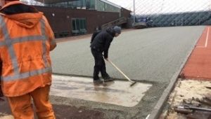 Het gaat hierbij om Fielddrain F, een nieuwe variant, die bestaat uit een open gemodificeerde betonlaag met een zeer fijne oppervlaktestructuur. Hierdoor ontstaat een harde onderbouw waardoor voldoende balstuit gerealiseerd wordt; een must in de tennis en padelsport.