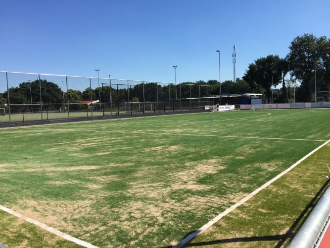 Op het waterveld werd extra belijning aangebracht om ook jeugdwedstrijden en andere trainingsvormen te kunnen spelen. Bij de omvorming van het waterveld kwam materiaal uit de onderbouw vrij. Omdat de afvoer vrij prijzig werd is dit materiaal gebruikt in de onderbouw van het nieuwe miniveld. Voor het waterveld is vanwege de fors lagere kosten een PU-foam gekozen. PU-foam vraag aandacht bij het verwerken, het kan verschuivenals het bij zonnig weer wordt gelegd en wanneer het daarna in de nacht blijft liggen en dus afkoelt. Als het foam niet goed verlijmd is, geeft dat oneffenheden in het veld. Een E-layer is tweemaal zo duur, maar heeft dit risico niet. Een E-layer is bij aanleg dus veel duurder, maar het gaat ook tweemaal zo lang mee en je loopt geen risico op oneffenheden. Als er budget voor is, is een E-layer zeker aan te raden. Voor de aanleg van het waterveld was aanpassing in debiet van de beregeningsinstallatie nodig. Voor deze aanpassing zijn de nodige vergunningen aangevraagd en het is meegenomen bij de uitvoering van het werk. Naam opdrachtgever: Gemeente Soest Contactpersoon opdrachtgever: M. Ahlers Contactgegevens opdrachtgever: Postbus 2000, 3760 CA Soest Naam adviesbureau: Adviesburo R.I.E.T. Contactpersoon adviesbureau: T. de Kroon Contactgegevens adviesbureau: Postbus 167, 3980 CD Bunnik Naam aannemer: CSC Contactpersoon aannemer: T. Ceelen Contactgegevens aannemer: Postbus 1277, 3890 BB Zeewolde