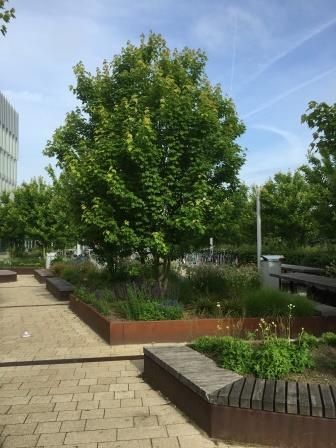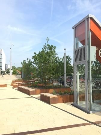 De Plaza Woudestein, het parkachtige evenementendak op de tweelaagse parkeergarage van de campus is het visitekaartje van de Erasmus Universiteit Rotterdam.