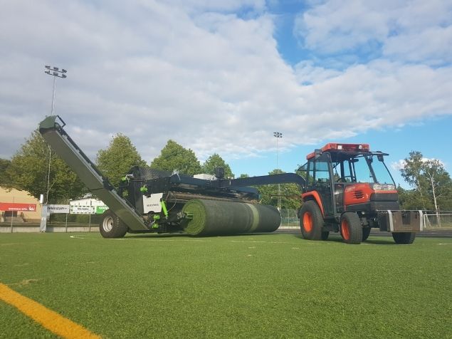 Silica Nova heeft een nieuwe 4,3 meter brede kunstgras klop- en oprolmachine waarmee ze, in combinatie met hun Infillcair-machine, zeer gemakkelijk kunstgrasvoetbalvelden demonteren. Met de Infillcair-machine kan het bedrijf alle soorten kunstgras met infill praktisch leegdraaien door middel van perslucht en borstels, in zowel natte als droge omstandigheden.