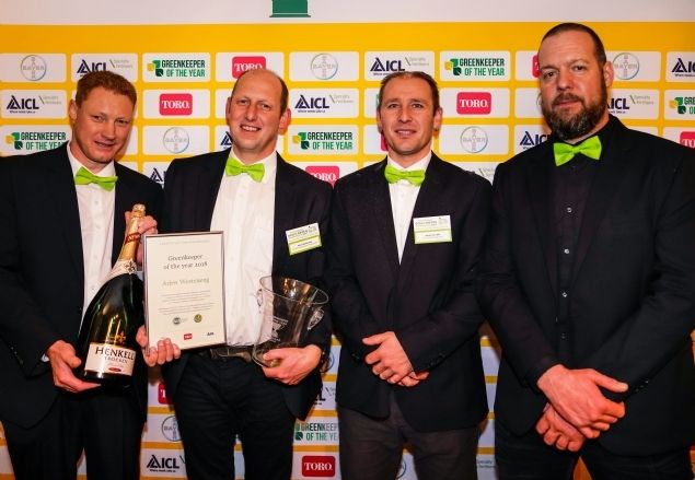 Als onderdeel van de beoordeling bezocht de jury ook de golfbanen. En hoewel zij er zich van bewust is dat het bezoek aan de golfbaan een momentopname is, liet ze tijdens de uitreiking niet onbenoemd dat de 'Arjens greens' er "uitmuntend" bijlagen. Gemene deler Alle kandidaten hebben zich goed ontwikkeld in de manier waarop zij de baan beheren, vindt de jury. Westeneng, maar ook de andere kandidaten werken volgens greenkeeping 'nieuwe stijl', met de nieuwste technieken en met de Green Deal als thema. Arjen Westeneng mag zich als winnaar in het rijtje scharen van Koert Donkers, Kristian Summerfield, William Boogaarts en Vincent de Vries. De verkiezing werd wederom mogelijk gemaakt door de sponsors Toro, ICL Specialty Fertilizers en Bayer. Namens Greenkeeper gefeliciteerd met de mooie titel, Arjen! Hieronder een impressie van de avond. Klik op de afbeeldingen voor een vergroting.