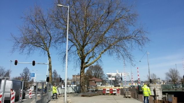 Beworteling Stoffer vertelt dat het adviesbureau na een bezoek aan de locatie en het ontvangen van gedetailleerde informatie van Waternet tot de conclusie kwam dat de bomen niet meer te redden waren. 'De bomen hebben hun wortels diep moeten ontwikkelen, omdat ze op het bruggenhoofd ver boven het grondwater staan. Waar platanen elders in Amsterdam een oppervlakkig en uitgestrekte beworteling moeten vormen, constateerden we dat de beworteling van deze twee bomen minder uitgestrekt en veel dieper zat. Helaas bevinden zich vlak naast en tussen beide bomen afsluiters die nu moeten worden opgegraven. Ook is er ruimte nodig voor de aansluitingen van de twee zinkerbuizen op de haaks hierop staande leiding in de Nassaukade. Alle ontgravingen gaan tot meerdere meters diep.'