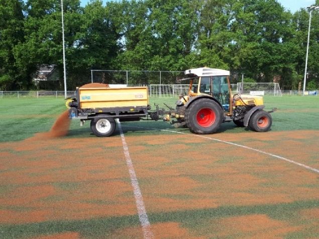 Vast onderdeel Het her- en bijvullen van de velden is een vast onderdeel van het onderhoud. 'Nu de SBR discussie blijft aanhouden, zijn we als gemeente van mening dat we op zoek moeten naar betere en veiliger alternatieven dan het standaard SBR dat in de markt verkrijgbaar is. Samen met FieldTurf Tarkett zijn we uitgekomen bij Progran infill. Progran bestaat uit een SBR-kern waar een zeer hoogwaardige en slijtvaste groene of PUcoating omheen zit.'
