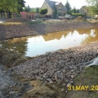 In de Duitse plaats Petersroda heeft Rootbarrier een waterdoorlatende worteldoek geplaatst. In de vijver waren de wortels van het riet door de leenbodem heen gegroeid.