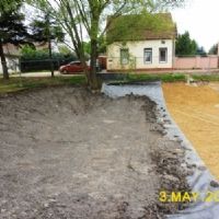 Om wortelschade in de toekomst te voorkomen, heeft de gemeente ervoor gekozen de vijver te saneren en het waterdoorlatende worteldoek Dupont Plantex Rootprotector te installeren. Het doek laat zich gemakkelijk plaatsen en het wortelvlies neemt de vorm van de kom aan.