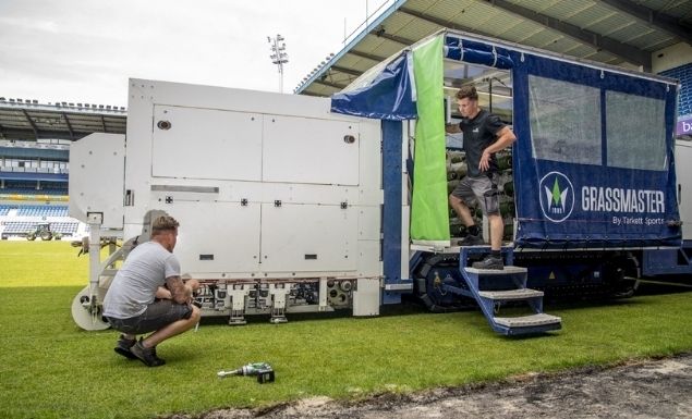 Tarkett Sports verzorgt de aanleg van de GrassMaster mat, waarbij kunstvezels, om de 2 cm, 18cm diep in de bodem worden geïnjecteerd. Dit gebeurt ondergronds, waar de natuurgraswortels zich hechten aan de kunstvezels. Resultaat is volgens Tarkett een verstevigde mat, goed bespeelbaar in alle weersomstandigheden.