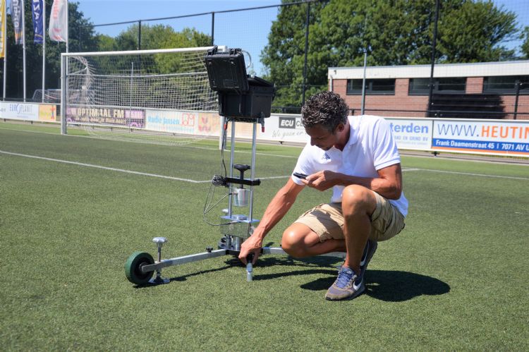 Meten is weten en een veld keuren is ongelofelijk rekenkundig precisiewerk, blijkt vandaag bij voetbalvereniging SDOUC in Ulft. Bij zomerse temperaturen voert Jacco van der Zalm, technisch manager bij SGS Intron, een periodieke keuring uit van een veld dat in 2010 werd aangelegd. Hij laat Fieldmanager zien hoe het in zijn werk gaat.