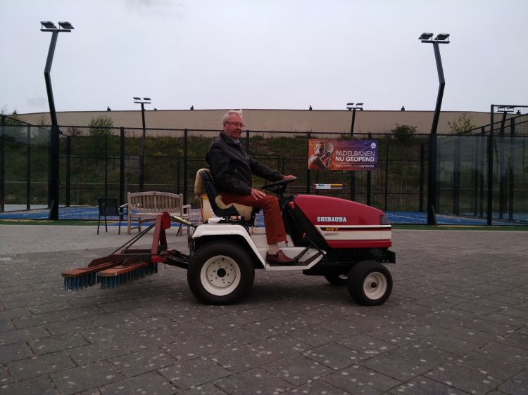 Volgens Frank Kraus heeft de vereniging ook nagedacht over details zoals de wijze waarop de kooi is afgewerkt. ‘We hebben er nadrukkelijk op gelet dat de kooi goed verzinkt is, zodat deze niet vroegtijdig gaat roesten.’ Dat zou de afschrijvingstermijn kunnen beïnvloeden, maar ook een negatieve uitstraling op de omgeving kunnen hebben. ‘Wij doen veel moeite om ervoor te zorgen dat de banen, de meubels en het buitenterras in goede conditie verkeren. De leden zien en ervaren dat en willen daar graag een steentje aan bijdragen’, stelt Jacqueline Neggers. Frank Kraus merkt op dat de kwaliteit van de accommodatie de verantwoordelijkheid van elk lid is. Goed nadenken over wat werkt en elkaar durven aanspreken zijn volgens Kraus de sleutels tot het succes. De club is sterk afhankelijk van de inbreng van vrijwilligers. ‘De gemeente Veldhoven heeft als beleid dat clubs waar het kan zoveel mogelijk zelf moeten doen’, zo merkt Kraus op. ‘Gelukkig beschikken wij over 50 tot 60 leden die actief betrokken zijn bij de club. Daarnaast hebben we een groep van zo’n 50 leden die op afroep beschikbaar zijn. We mogen dus stellen dat 20 procent van de leden actief bij onze vereniging betrokken is.’ Dankzij twee jaarlijkse ‘doedagen’ hoopt de vereniging de afhankelijkheid van de leden te kunnen minimaliseren. ‘Voor de komende doedag staat de teller al op 35 aanmeldingen en daar zijn we erg blij mee.’ Dat neemt niet weg dat de club met het idee speelt om de activiteiten op die doedagen in kleinere delen op te splitsen. ‘Het idee is om vanaf volgend jaar drie keer per jaar een doedag te organiseren, om meer zaken sneller te kunnen aanpakken.’ Goede stimulansDe focus op de accommodatie en de komst van de padelbanen hebben het ledenbestand een extra impuls gegeven, zo merkt Neggers op. ‘Momenteel hebben we ruim 640 leden, van wie zo’n 70 jeugdleden. De komst van de padelbanen zal de vereniging zeker doen groeien.’ Die groei legt wel druk op de beschikbare baancapaciteit en de mogelijkheid om te spelen. Groundsman Lambert Coolen merkt in toenemende mate hoe het plannen van het onderhoud een hele opgave wordt door de populariteit van de vereniging. Samen met collega-vrijwilligers Peter en Rini grijpt hij elke kans aan om de acht banen in topconditie te houden. ‘Het belangrijkste is dat we de banen regelmatig vegen en ervoor zorgen dat overal voldoende infill-rood ligt’, zo merkt hij op.‘Omdat de spelers graag sliden, schuift het infill-rood automatisch naar de zijkanten van het veld. Daarom moeten we dat regelmatig herverdelen, zodat er overal voldoende infill-rood ligt. Dat draagt bij aan de spelbeleving en de kwaliteit van de banen. Daarnaast vegen we om te voorkomen dat algen en mos een kans krijgen.’ De verrichtingen van Coolen blijven niet onopgemerkt. Onlangs werd hij tijdens een bijeenkomst voor groundsmen in het zuiden van het land in het zonnetje gezet. Van de ruim 700 banen in de regio bleek dat de banen van TC Metzpoint er het beste bij lagen. De gedrevenheid en clubliefde van Coolen betekenen veel voor de vereniging. De tekst loopt door onder de afbeelding