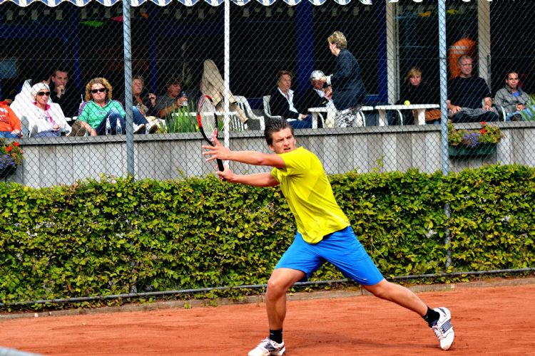 ‘Qua aanschaf zijn ze misschien net wat duurder dan een standaard-gravelbaan, maar als ik zie hoe snel de banen weer bespeelbaar zijn na een regenbui en hoe weinig onderhoud ze vergen, durf ik te stellen dat wij de beste banen hebben die je kunt krijgen’, zo zegt hij enthousiast. De baan is op afschot gelegd. ‘Dat is het extra waarvoor je betaalt, maar vanwege de hardheid van de baan heb je minder last van kuilen, waardoor het prettiger spelen is. Dat geldt zowel voor toptennissers als voor recreanten. Bovendien hoeven we daarom ook minder reparaties uit te voeren. Die harde onderlaag zorgt er ook voor dat regenwater sneller wordt afgevoerd naar de zijkant van de baan. Daardoor is de baan sneller droog en weer bespeelbaar na een regenbui.’