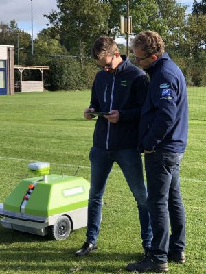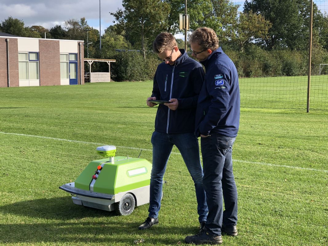 Deze zomer introduceerden wij vol trots ’s werelds eerste en enige volledig gps-gestuurde robot die zelfstandig lijnmarkering op sportvelden aanbrengt: de Intelligent One. De lijnmarkeringsrobot was op dinsdagavond 9 oktober in actie te zien tijdens de uitzending van De Wereld Draait Door. Met de Intelligent One werd een afbeelding van Johan Cruijff op het veld van Sportpark Oostenburg in Oosterwolde gemaakt.