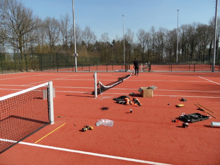 Ook Jeroen Smits van BTL Sport verwacht niet dat vanuit die hoek nog veel nieuws zal komen. 'Op het gebied van kunstgras zijn er geen nieuwe ontwikkelingen, omdat die simpelweg niet meer nodig zijn. De enige reden waarom deze ondergrond nog populair is, is omdat je daarmee in de winter door kunt spelen. Dat komt goed uit voor verenigingen waarvoor het huren van een hal onmogelijk of onbetaalbaar is.' Ook Lourens Barmentloo van Wijnbergen Sportbouw sluit zich bij die verwachting aan. 'De tennismarkt is uitgekristalliseerd. Bovendien is het sowieso een aparte sport vanwege de ruime keuze aan verschillende ondergronden', zegt hij, terwijl hij naar de lange reeks verschillende tennissystemen wijst die opgenomen zijn in de Sportvloerenlijst. Elders in deze editie leest u hoe Barmentloo, samen met LMB Sports, nu tracht om Tennisforce II weer in de markt te zetten. 'We zagen dat er wat ontbrak in ons pakket en we kwamen tot de conclusie dat Tennisforce II een welkome aanvulling zou zijn', zegt hij, verwijzend naar de baansoort waarbij een laag gebonden gravel wordt afgestrooid met een laagje losse gravel. In beide lagen wordt EPDM verwerkt. 'De baan is vorstbestendig en biedt bovendien meer veerkracht, waardoor hij comfortabel is om op te spelen.' Naast die introductie test Wijnbergen Sportbouw momenteel ook een baansoort die de Nederlandse tennisverenigingen straks toegang tot een Davis Cup-baan of Fed Cup-baan moet geven. ‘Die twee toernooien worden binnen gespeeld. Wij krijgen doorgaans weinig tijd om die banen aan te leggen, zodat we speciaal gravel moeten gebruiken dat heel snel hard wordt. Op dit moment zijn we bezig met een proef om te kijken of we die constructie ook buiten kunnen leggen. De eerste is aangelegd op een toptenniscentrum, waar men beschikt over professionele groundsmen. Voordat we dit systeem echt op de markt willen zetten, willen we er eerst zeker van zijn dat ook amateurverenigingen met vrijwilligers in staat zijn om de baan in goede conditie te houden. Het vergt namelijk wel een andere aanpak en ander onderhoudsmateriaal om die baan goed te onderhouden.’ Barmentloo heeft zich daarbij voorgenomen om niet over één nacht ijs te gaan. ‘Je bent zo goed als je laatste project’, weet hij uit ervaring. Niet speler, maar bond leidendDe banenbouwers praten dus veel over comfort, maar als het gaat om producten laten ze zich vooral leiden door de KNLTB. Zo stelt Wijnbergen Sportbouw dat Tennisforce II vooral veel weg heeft van spelen op gravel. Ook Ton de Rooij probeert nadrukkelijk een product te promoten dat lijkt op gravel. ‘Wij voeren sinds vier jaar Topclay in ons pakket. Het product is al twaalf jaar onder verschillende namen op de internationale markt. Het is een kunststofmat, oftewel membraan, die wordt afgewerkt met een gravellaag. De dikte van de gravellaag op de bovenkant van de membraan varieert van 1 tot 2 mm. Deze dikte heeft verder geen invloed op de waterdoorlatendheid. Onder de kunststof ligt een verharde ondergrond van waterdoorlatend beton. Daaronder ligt een mengsel van zand en lava. Je hoeft bij dit veld het traditionele voorjaarsonderhoud van belijnen, frezen en aanwalsen niet meer uit te voeren’, licht hij toe. ‘Tapijt, zoals bij smashcourt, kan omhoog komen bij bevriezing en opdooi. Bij TopClay gebeurt dat niet. Het is feitelijk een combinatie van gravel en hardcourt.’Elders in deze editie beschrijft collega Santi Raats de goede ervaringen die TC Unicum met deze ondergrond heeft opgedaan. Het zijn ontwikkelingen van een gebonden onderbouw die wordt afgestrooid met granulaat. Edward van der Meijden van de Vereniging Tennisbaanbouwers Nederland: ‘Dit soort systemen sluit het meest aan bij de wens van de KNLTB om vooral op gravel te blijven spelen, terwijl ze het seizoen verleggen.’ Die behoefte aan gravelachtige baansoorten biedt de banenbouwers voorlopig nog wat kansen. 'De tennismarkt is meer een renovatiemarkt aan het worden', stelt Floor Groeneveldt. Hij denkt echter dat innovatie elders in het systeem gevonden moet worden. 'Hergebruik van bestaande materialen wordt daarbij belangrijk.' Ook Mathieu de Rooij (Ton de Rooij Tennis) denkt dat men beter kan kijken naar de onderbouw wanneer men op zoek is naar innovaties. 'Je moet dan denken aan een toepassing zoals Supersub, Fielddrain of Sportdrain voor tennisbanen', zo licht hij toe.