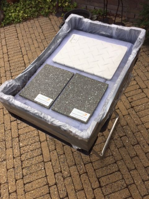 Op de krat een drukverdeeldoek met daarop diverse soorten shockpads