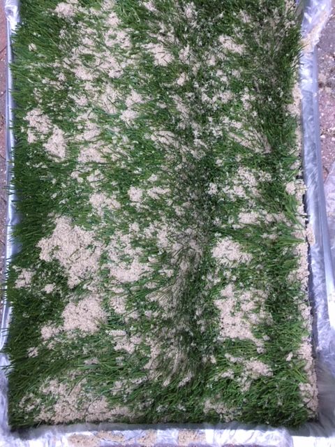 Kunstgras met zand, na twee weken nog steeds vochtig