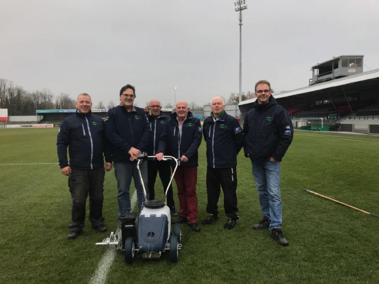 Toegewijde groep De demonstratie werd gegeven in het bijzijn van Hans de Zeeuw, Jan Jong, Jacques Kroeze van Kroeze gras- en cultuurbewerking en de vrijwillige fieldmanagers van FC Dordrecht: Jan Kijkuit, Eric Coblijn, Arie Heester en Mar Bot. Volgens Arjen Spek is het geven van de demonstratie niet alleen leuk, maar vooral bijzonder nuttig. 'De fieldmanagers werken al sinds de eerste thuiswedstrijd met de machines. Maar deze demonstratie leert hen er nog beter mee omgaan, waardoor zij hun werk met nog meer plezier en voldoening kunnen doen. Omdat ik weet dat het een enthousiaste en toegewijde groep is en onmisbaar voor de club, maak ik van de gelegenheid gebruik om deze fieldmanagers in het zonnetje te zetten met gebak en een behaaglijke shoftshell jas.'
