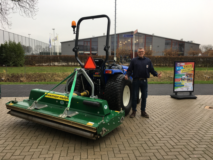 Echte puristen zweren bij een kooimaaier omdat die het mooiste maaibeeld geeft, maar de groep puristen is nog maar dun gezaaid. Het beheer van sportvelden en openbaar groen is tegenwoordig het domein van managers en pragmatisten, waarbij 'productiecijfers' overheersen. Met de Major Swift weet Major Equipment daarin een balans te vinden. 'Eén van de redenen waarom ik het maaibeeld van een kooimaaier het mooiste vind, is omdat die gebruikmaakt van zowel een mes als een tegenmes om het gras te knippen', stelt Johannes Ballast. Major maakt echter gebruik van hetzelfde principe. 'Het gepatenteerde dubbele messysteem in de Major Swift draait op grote snelheid, waardoor het gras achterover staat voordat het wordt afgeknipt.' Het maaipatroon van deze maaier is daarom vergelijkbaar met dat van een kooimaaier, maar tegen een fractie van de prijs. 'Wat de Swift extra aantrekkelijk maakt, is dat de totale aanschafprijs van een combinatie vergelijkbaar is met die van een kooimaaier. Maar de kooimaaier kan alleen in het maaiseizoen worden gebruikt, terwijl de tractor die gebruikt wordt voor het maaien met de Swift ook voor andere activiteiten kan worden ingezet.' Om die reden noemt Evert van Dijk van Stichting Wijksport in Wijk bij Duurstede hun investering de beste investering van de laatste twee jaar. 'Wij hebben zowel een 40 pk Iseki TLE3400-tractor als een Major Swift 2,40-achtermaaier gekocht. Die tractor kunnen wij nu ook gebruiken voor het bladblazen of het borstelen van het kunstgrasveld. Wij hebben dus twee vliegen in één klap geslagen.' Feitelijk heeft Van Dijk een heel nest knock-out gemept. 'Vergeleken met de kooimaaier die wij eerst hadden, kunnen wij voortaan 's ochtends eerder beginnen met maaien omdat het minder proppen geeft op het veld, zelfs al is het gras nog wat dauwig.' Van Dijk vertelt dat hij ook geen proppen ziet als hij langer gras moet maaien, vandaar dat hij de Major Swift ook inzet voor het maaien van het bijgras op het sportpark, elders in Wijk bij Duurstede.
