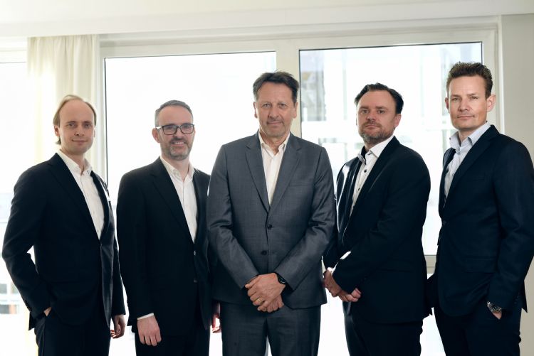 | Tijdens het ondertekenen. Vlnr: Jakob Fuhr Hansen (Partner, Nordic Alpha Partners), Nikolaj Magne Larsen (CFO, Re-Match), Stefaan Florquin (CEO, Re-Match), Dennis Andersen (Oprichter, Re-Match), Laurits Bach Sørensen (Partner, Nordic Alpha Partners). |