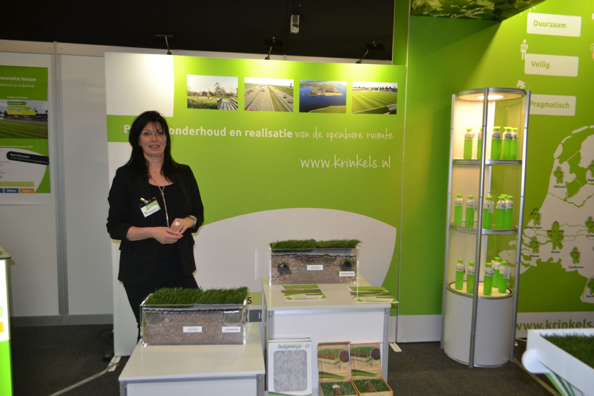 Alette Vermeulen op de stand van Krinkels.
