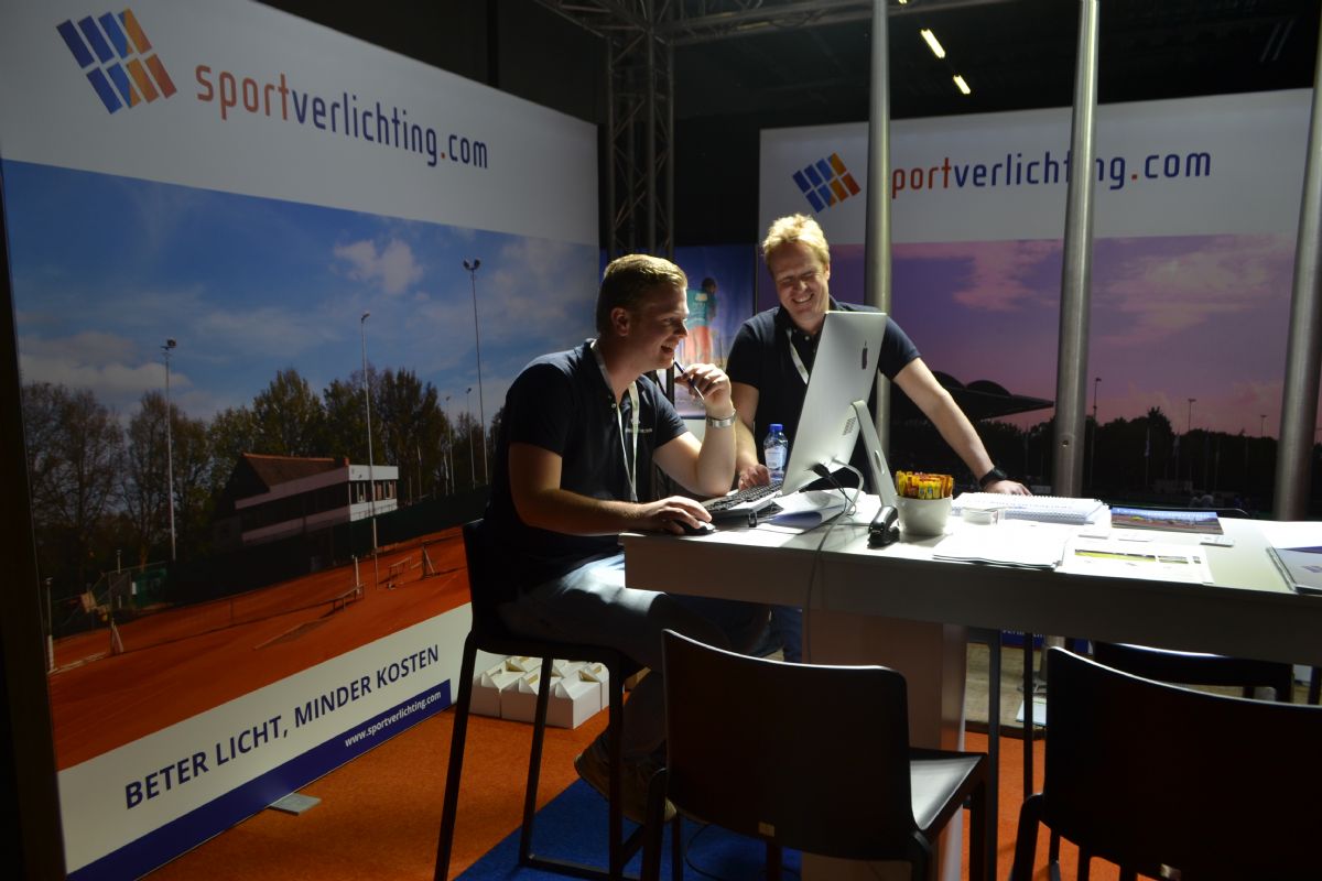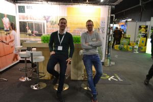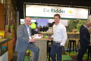 Lucas Servaas en Arnoud Teeuwissen op de stand van J. de Ridder BV