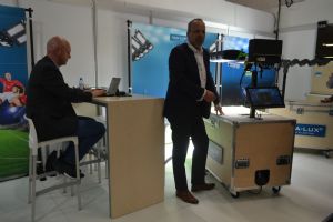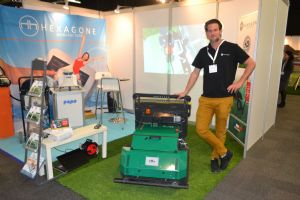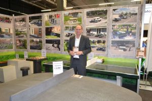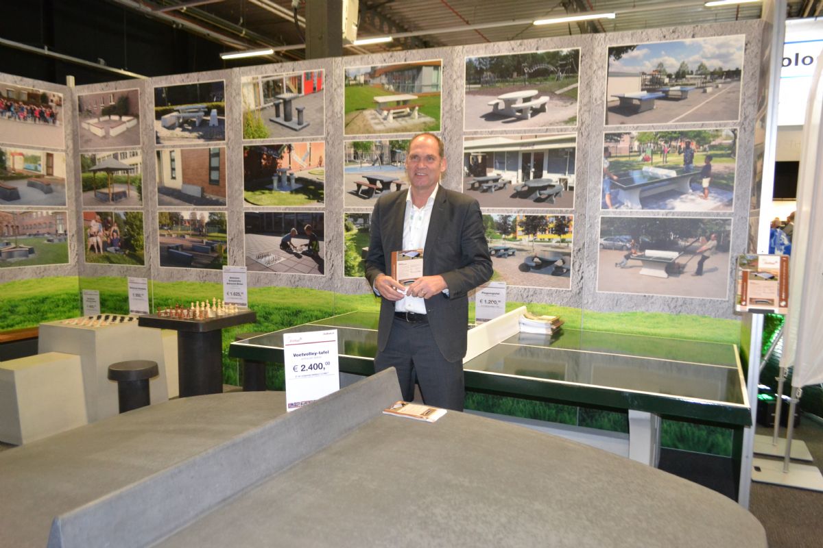 Teus van Ekeren op de stand van AT Machines.