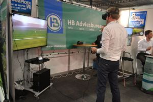 Bij HB Adviesbureau konden bezoekers doelman spelen in VR; daar maakte onze accountmanager dankbaar gebruik van.