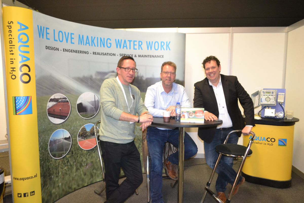 Stefan Elshof, Henno den Engelsen en Armand Vree op de stand van Aquaco.