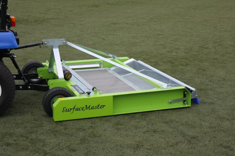 'De Surface Master is een oppervlaktereiniger die de toplaag van het veld, met de vervuiling die daarin zit, reinigt. Het is erg belangrijk dat deze vervuiling eruit gehaald wordt, omdat de mat anders een voedingsbodem wordt voor mossen en dergelijke en omdat sommige vervuiling blessures kan veroorzaken.' De machine kan ingezet worden op alle type kunstgrasvelden, legt Van Ekeren uit. 'Voetbal, hockey, korfbal en tennis met elke soort infill: rubber (SBR), kurk, zand, TPE, EPDM, noem maar op.'