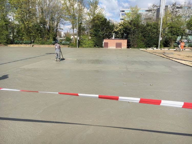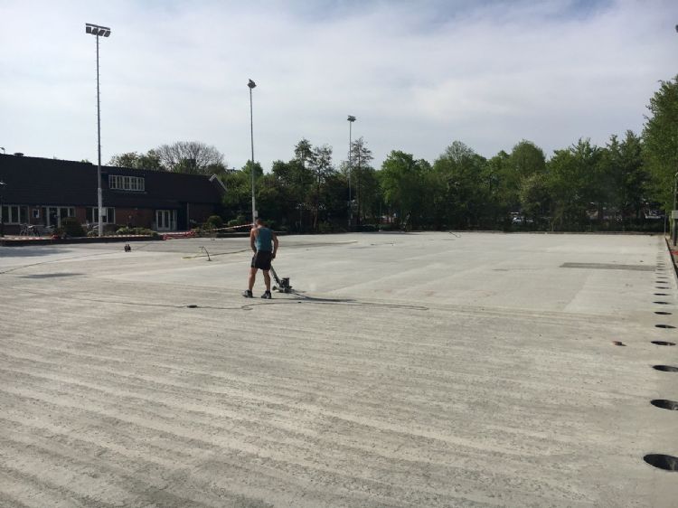 De banen worden gebouwd op een fundering van 15 centimeter waterdoorlatend schuimbeton van Supersub Sportbases. Supersub neemt daarbij de installatie voor eigen rekening. Supersub en De Rooij werken vaker samen, vertelt Mathieu de Rooij. "Vorig jaar hebben we al drie projecten met hen gerealiseerd. Dat bevalt prima."