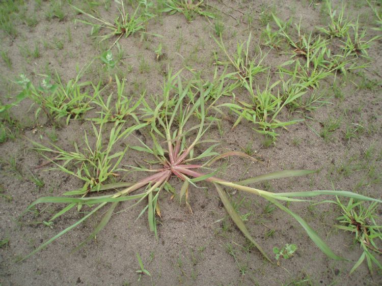 Een voorbeeld van een ongewenste grassoort is de hanenpoot. Dit subtropische, oliehoudende gras kan sterk aanwezig zijn in de toplaag van het veld. Zeker als je gebruik maakt van dressgrond, want het zaad zit dan in de aangevoerde grond. De hanenpoot heeft een warmtestoot nodig om te kiemen, dus bij deze oplopende temperaturen kiemt hij extra snel. Zaai dus tijdig het trainingsveld in met een snel kiemend grasmengsel, zodat de hanenpoot geen kans krijgt om zich te vestigen.