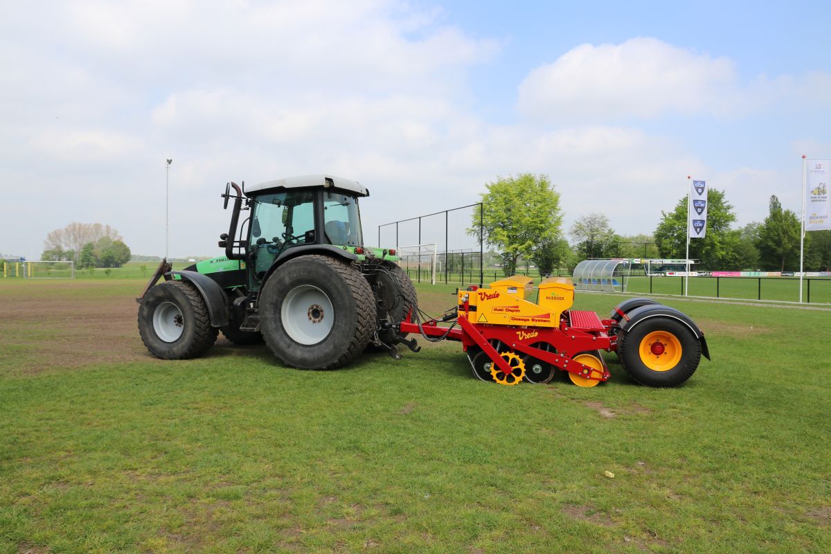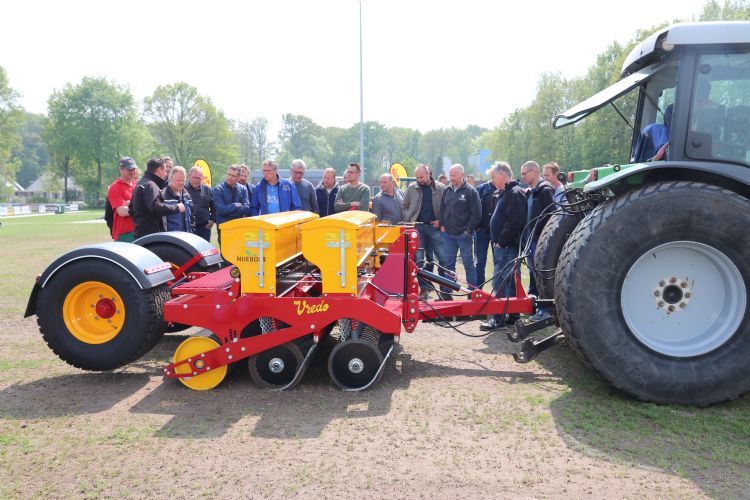 Op woensdag 1 mei werden in Wilp (Gld) twee DDS-doorzaaimachines in de praktijk gedemonstreerd. De masterclass DDS doorzaaien met Limagrain Advanta en Vredo als organisatoren mocht rekenen op deelname van cultuurtechnisch aannemers en sportveldbeheerders. Na een presentatie van Pieter-Teunis Hoogland (Vredo) en Jan Krijnen (Advanta) ging de groep het veld op om een gedragen doorzaaimachine en een gloednieuwe getrokken machine in de praktijk te zien.