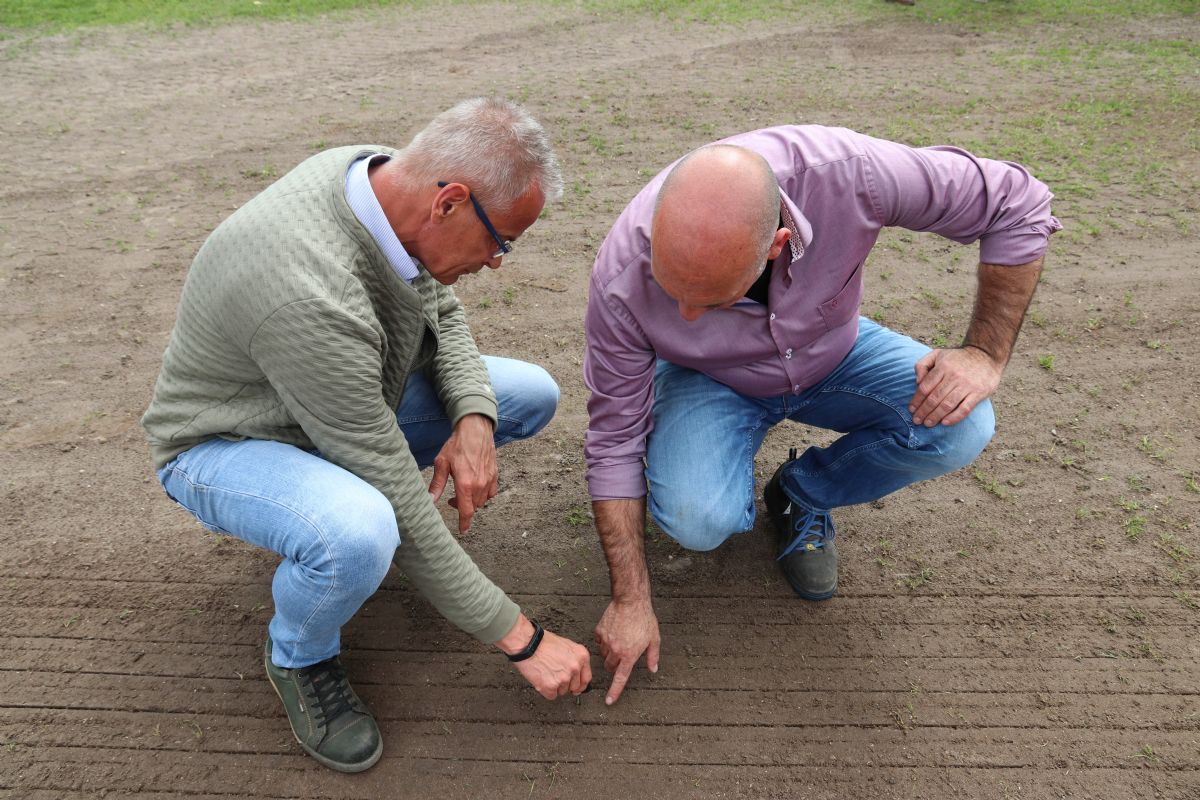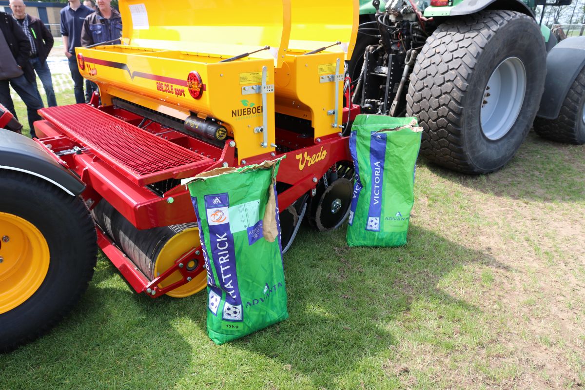 Advanta en Vredo benadrukken tijdens de demonstratie dat het vooral van belang is om het zaaien per veld af te stemmen. Ieder veld is uniek, dus de hoeveelheid graszaad en de manier van zaaien ook. Er worden al wat vragen gesteld, maar het gesprek komt pas echt op gang als de groep rond de machines op het veld staat. Ervaringen worden uitgewisseld en de voor- en nadelen van de verschillende DDS-machines worden besproken. Ondertussen is de zon gaan schijnen, perfect weer om een stukje van het veld in te zaaien. Met Advanta Victoria Adcance graszaad in de voorste zaaibak en Advanta Hattrick Advance in de achterste, is de machine klaar om te gaan. Er wordt één baan mono-zaai en één baan DDS-zaai gereden met de getrokken machine. Het verschil tussen de manieren van zaaien is duidelijk zichtbaar.