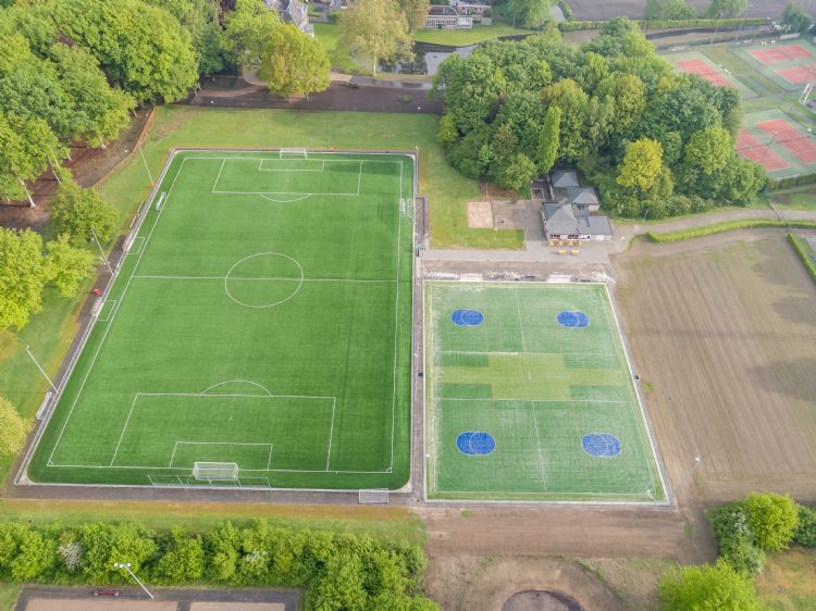 'Puzzelen om de optimale situatie voor een club te bereiken, dat is ons vak', verklaart Boon. De velden zijn een kwartslag gedraaid om aan de maatvoering te kunnen voldoen. Omdat de lengte, inclusief de draaiing van het veld, veranderde van 60 m in 20 m, kwam er ruimte vrij om een terras aan te leggen, pal voor het clubhuis. Er kwam zelfs nog meer ruimte vrij omdat de opslag van de doelen voor het voetbal werd verplaatst. Boon: 'We hebben de nieuwe doelopslagplaats bewust voorzien van betonplaten. Deze zijn afgekit, zodat er geen grasgroei tussen de bestrating kan komen. Hierop kunnen probleemloos doeltjes worden gestald. Dit gedeelte is heel onderhoudsvriendelijk.'