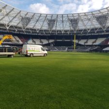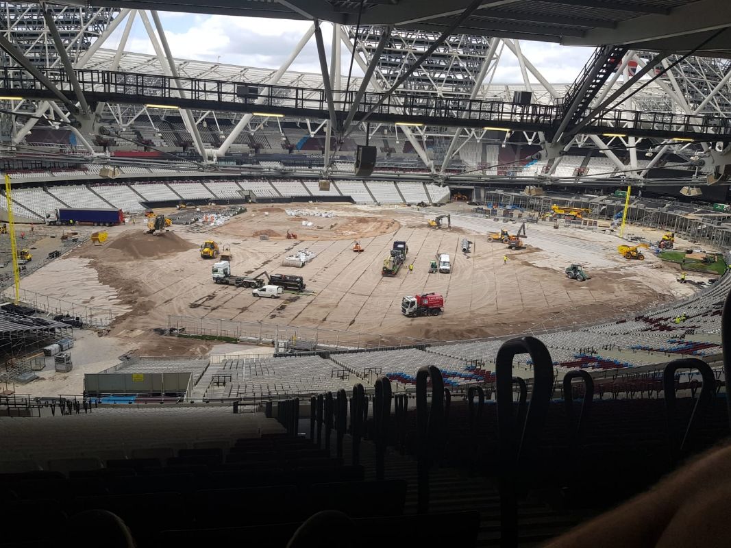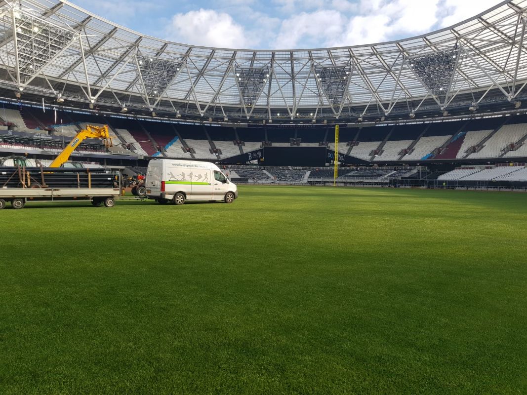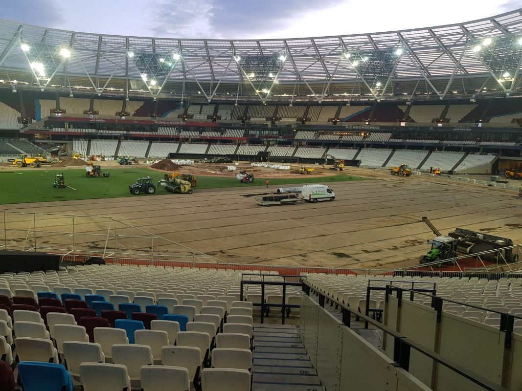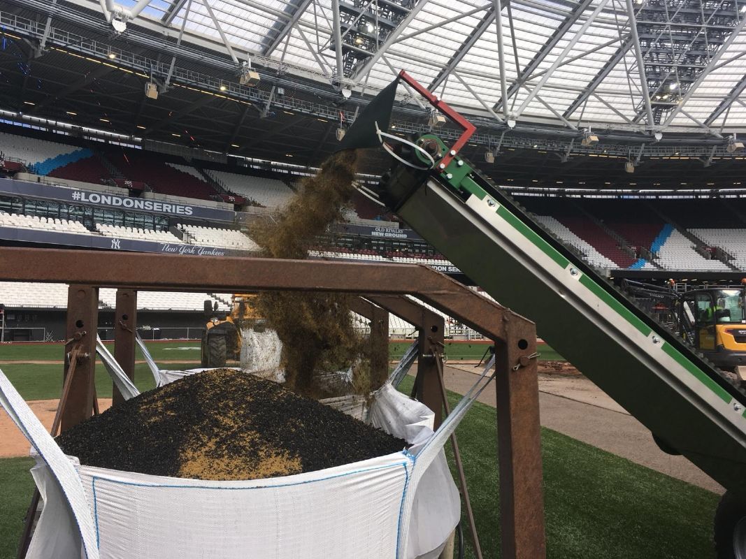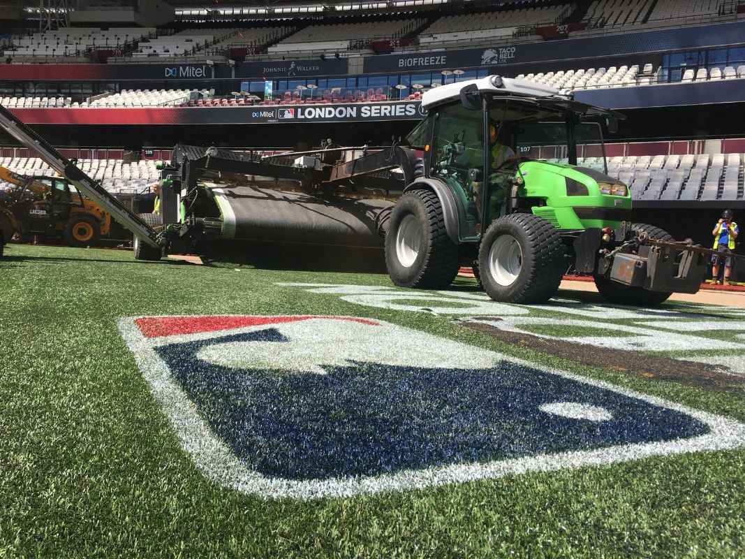 Het Olympisch Stadion, waar normaal gespeeld wordt door de Londense voetbalclub West Ham, is dus voor even omgetoverd tot een honkbalstadion in het kader van de 'MLB London Series'. Voor het eerst werden deze honkbalwedstrijden gespeeld in Europa en daarvoor is alles uit de kast gehaald. In totaal omvat het project 140.000 vierkante meter kunstgras, 400 meter hekwerk en 3500 ton split voor de onderbouw.
