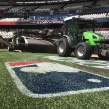 Een uniek project in het Olympisch Stadion in Londen. Voor twee honkbalwedstrijden tussen de New York Yankees en de Boston Red Sox is speciaal een kunstgrasveld aangelegd. Na de wedstrijden is het kunstgras direct weer verwijderd.