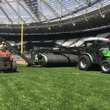 Dit bijzondere project heeft een Nederlands tintje. Het kunstgras is namelijk aangelegd door J&E Sports uit Oss. Het veld is het type Vertex van Fieldturf-Tarkett. Direct na de wedstrijden, die plaatsvonden op 29 en 30 juni, is de mat weer verwijderd. Die klus werd toevertrouwd aan Silica Nova. Bastiaan Doornewaard van Silica Nova vertelt: 'Wij moesten het veld op de lijmnaden snijden, ontdoen van alle infill(uitkloppen) en op een plastic pijp oprollen voor herinstalatie. Het vrijgekomen infill-materiaal moest in big bags worden gedeponeerd.'