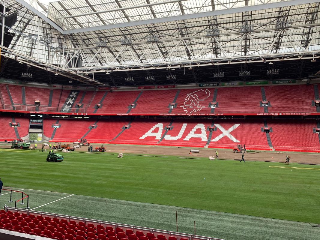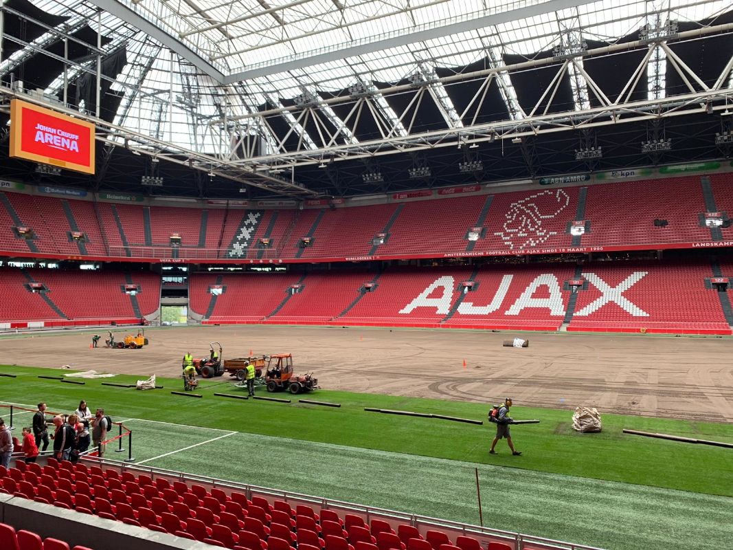 Na een junimaand vol concerten en evenementen is de Johan Cruijff Arena klaargemaakt voor het aankomende voetbalseizoen. Op maandag 8 juli zijn de nieuwe zoden gelegd, afkomstig van Hendriks Graszoden uit Heythuysen.