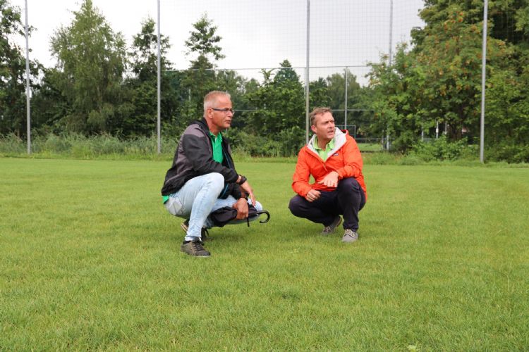 Het trainingsveld wordt intensief gebruikt en daarom is ervoor gekozen om het veld in april al een keer extra door te zaaien met Recover 4 Tetra (100% Engels raaigras, waarvan de helft tetraploïd). 'Ik vind dit echt geweldig', zegt Leo, 'als je het veld een week met rust laat, geef je het mengsel een goede start en ontstaat er in korte tijd een prachtige mat met weinig onkruid. Dat komt goed uit nu we niet meer mogen spuiten. Met deze techniek van een extra keer doorzaaien bespaar je niet op het onderhoud, maar dat moet ook niet het doel zijn. Als het veld het hele jaar door groen is, ben ik een gelukkig mens'.