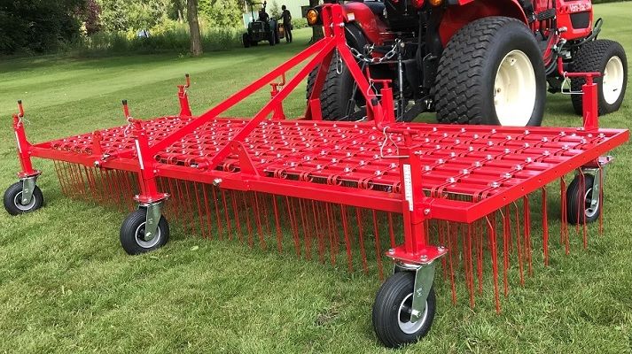 De Talon is op te hangen aan de driepuntshef achter de trekker. De machine kan opgebouwd worden in drie terreinvolgende delen van anderhalve meter, met een maximale werkbreedte van 4,5 meter. 'De 4,5 meter-versie is bijvoorbeeld erg geschikt voor gebruik op fairways', aldus Rozema, die toevoegt dat de Talon met 10 kilometer per uur werkt. 'Bij een hoge snelheid is het effect van de pennen het grootst.'